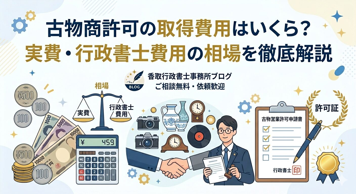 「古物商許可ってどのくらい費用がかかるの?」「行政書士に頼むといくらになる?」——許可を取ろうと考えたとき、まず気になるのがお金のことですよね。
